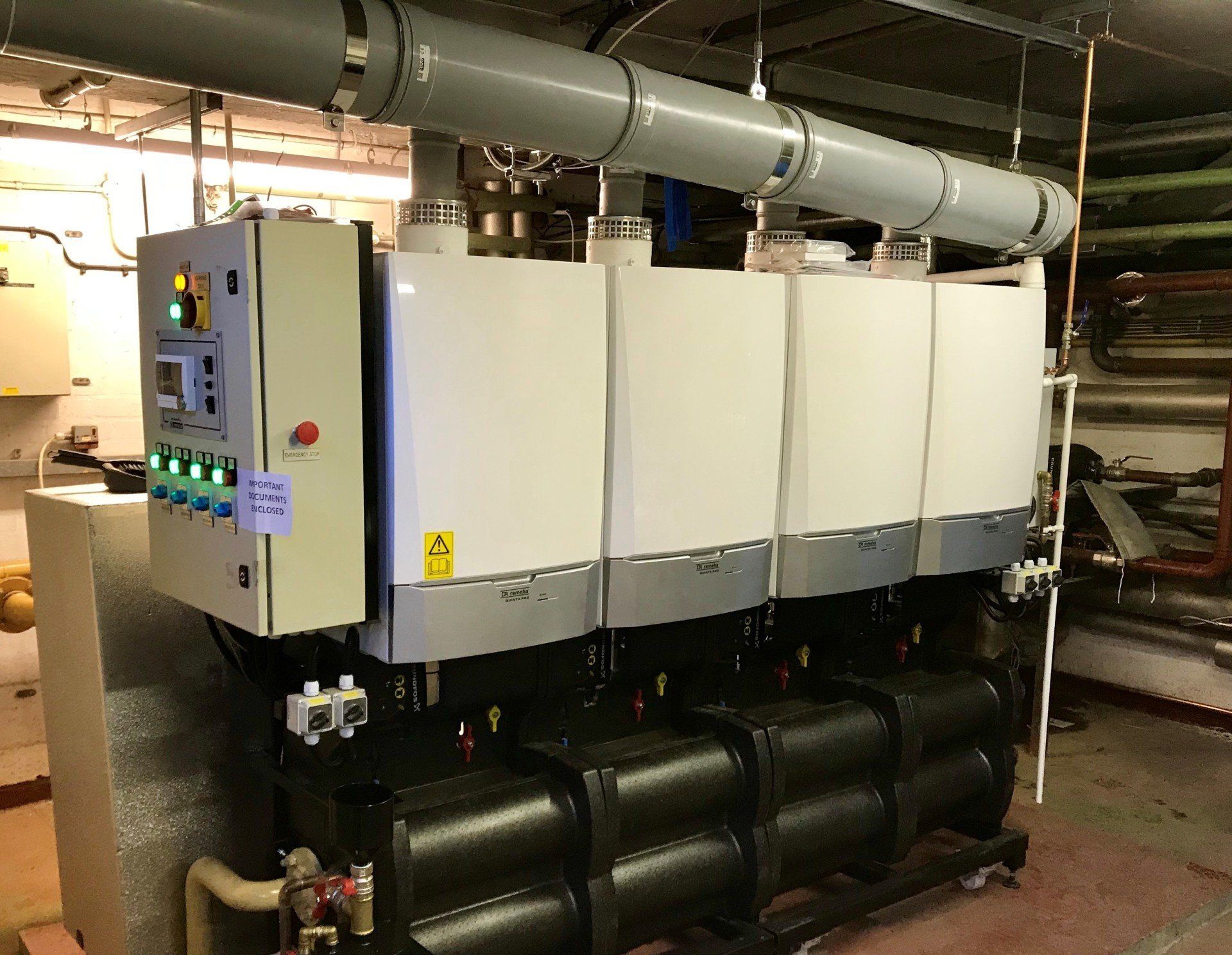 Replacement of failed Hamworthy Purewell Boilers with Remeha Quinta Pro, complete with frame & header kit.