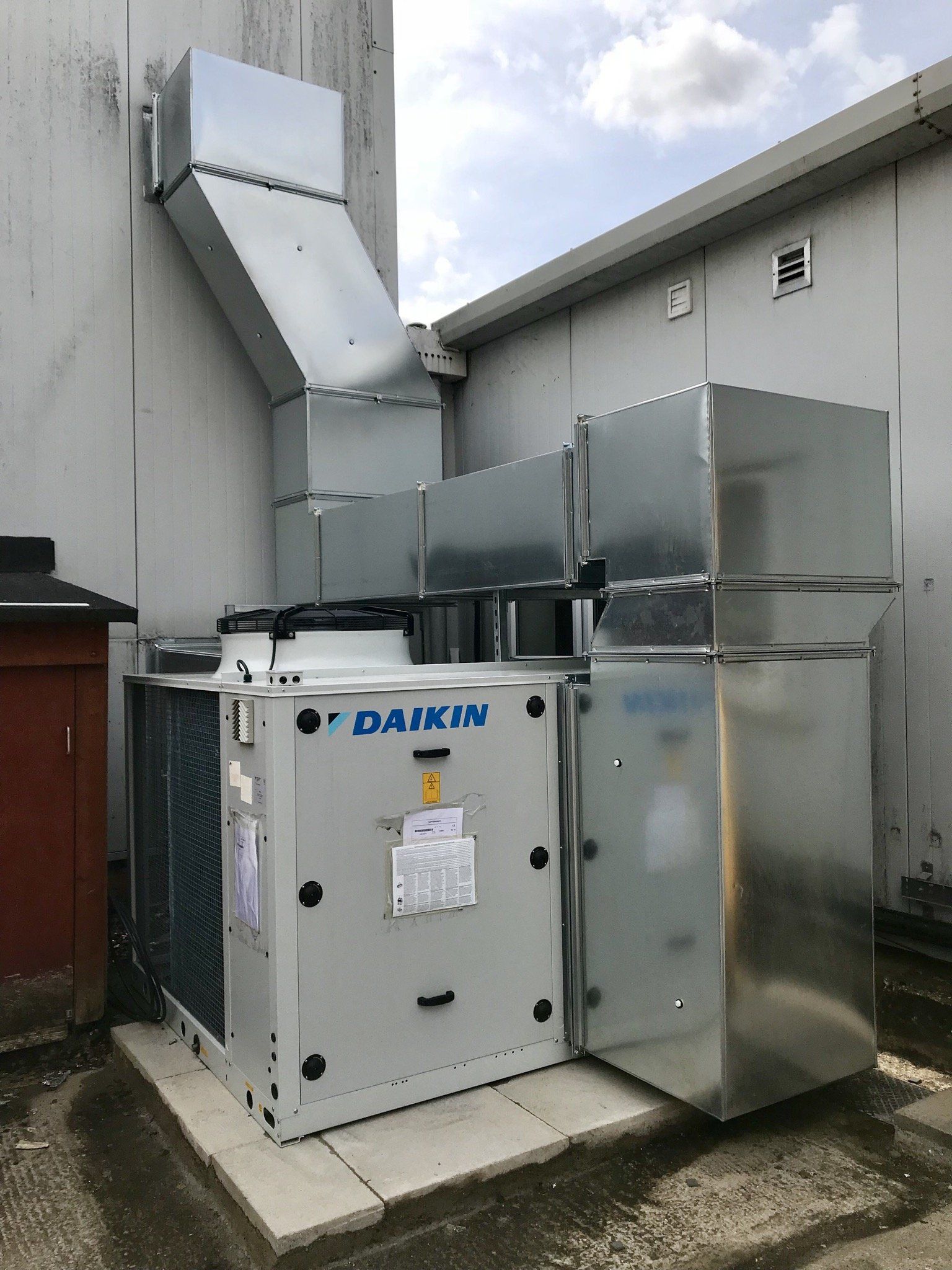 New packaged Daikin R410a unit serving crital test ares, installed complete with pre-insullated duct work.